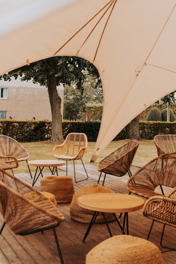 Ook op vlak van aankleding werd elk detail doordacht. Stoelen en tafels werden volledig ingekleed in de bedrijfskleuren, waardoor de branding subtiel maar consequent aanwezig was. De feestavond zette zich verder in een sfeervol aangeklede feesttent die uitnodigde tot dansen en vieren.